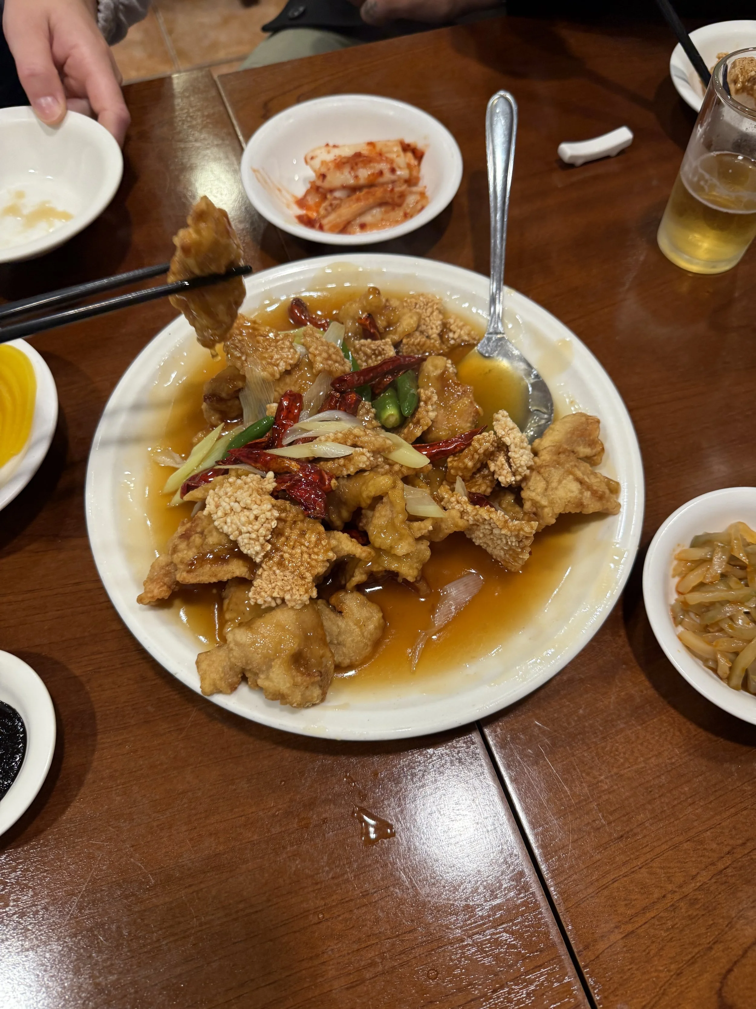 Here’s a shot of the Tangsuyuk from Gadam. I spaced out and forgot to add scallions to my version, but you certainly can. Also, serve with kimchi!