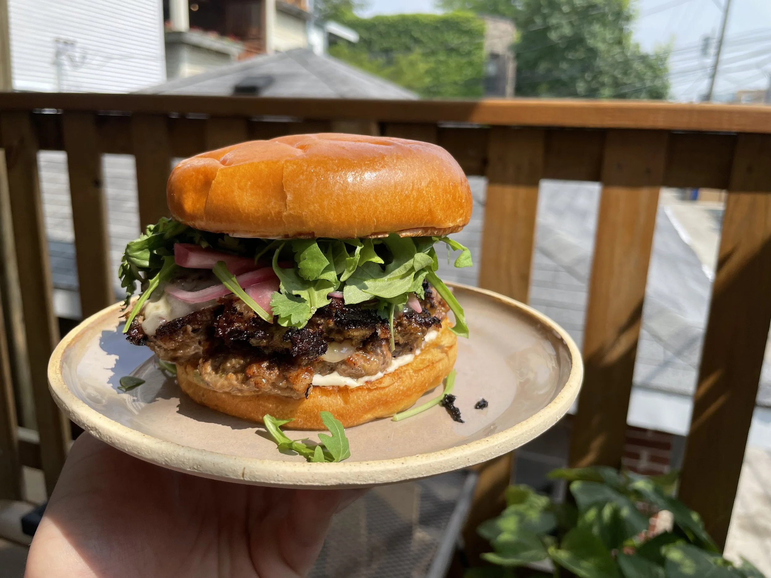 While those patties are cooking, we're also toasting some decadent brioche buns. We'll spread a heaping spoonful of Smoky Chipotle Garlic Honey onto the bottom halves, layer on some fresh arugula, add our beefy, cheesy masterpiece of a patty, and crown it with pickled red onions. As the finishing touch, another drizzle of that smoky, sweet, spicy honey. Sink your teeth into this baby, and you're going to taste an explosion of flavors that's nothing short of a party in your mouth. Fire, sweet, sour, salty, and umami, all playing together in perfect harmony. 🤘🏼 Adam