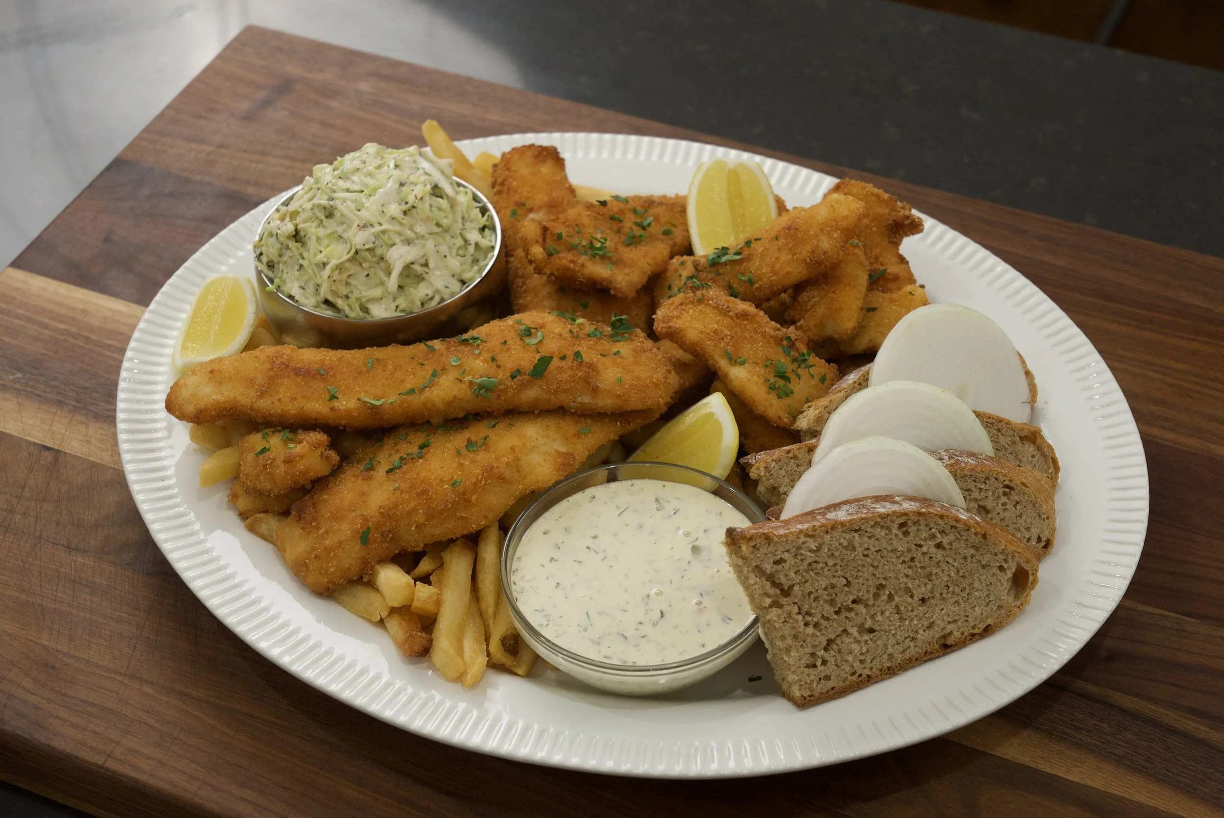 There are many ways to serve this so serve this in a way that suits your situation. If you’re feeding a group, I prefer to serve things family-style so people can take as much (or little) as they’d like. In Wisconsin, the rye bread is buttered and served with raw white onion. The sharp, pungency of the onion is great at breaking up the heaviness from the fried food. That along with the tangy tartare, vibrant spritz from a lemon wedge and the mustardy coleslaw bring this whole thing together.